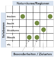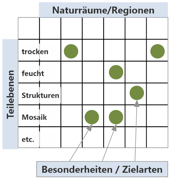 In der Regel ist es zweckmässig, für die ÖI-Planung unterschiedliche Teilebenen/-netze, trames oder sous-reseaux zu unterscheiden, also etwa trockene und feuchte Bereiche. Dies kann auch via Gilden, Lebensraumtypen o.ä. erfolgen.