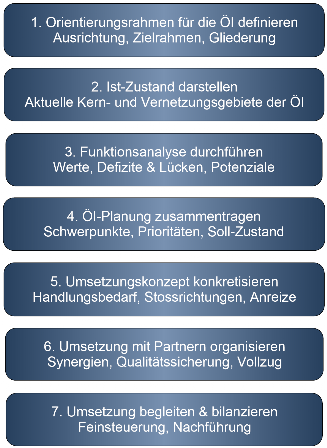 Räumliche und inhaltlicher Schwerpunkte der ÖI festlegen und damit Soll-Zustand der ÖI bestimmen sowie Prioritäten vergeben. - Umsetzungskonzept konkretisieren